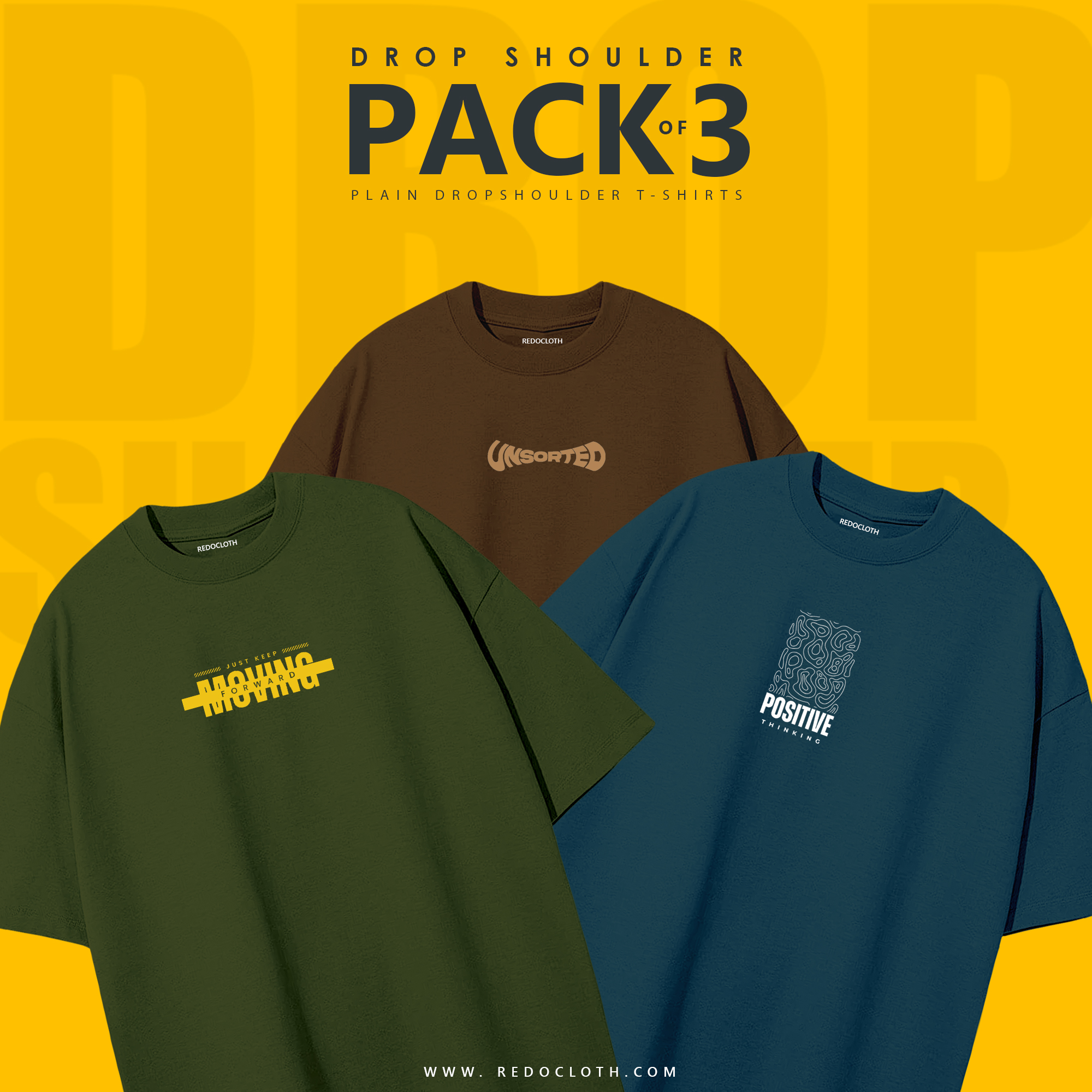 DROP SHOULDER T-Shirts Pack of 3 (MOVING)